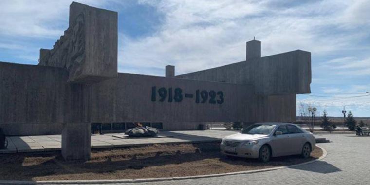 Мемориал, возле которого припарковалась женщина, воздвигнут на месте братской могилы красноармейцев, погибших в годы Гражданской войны.