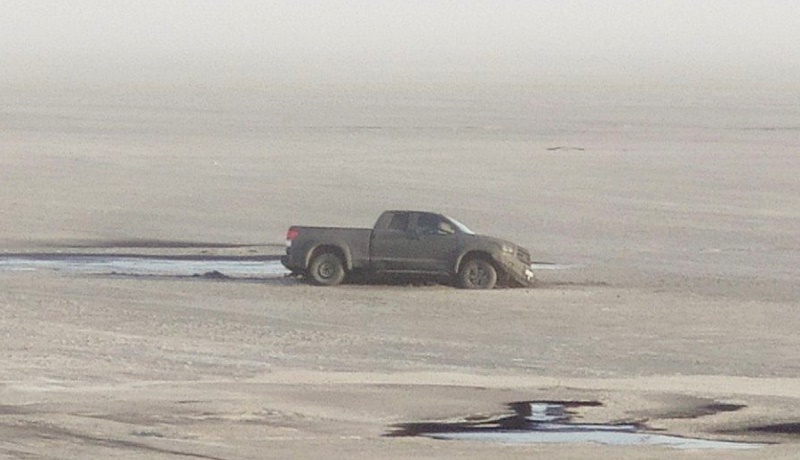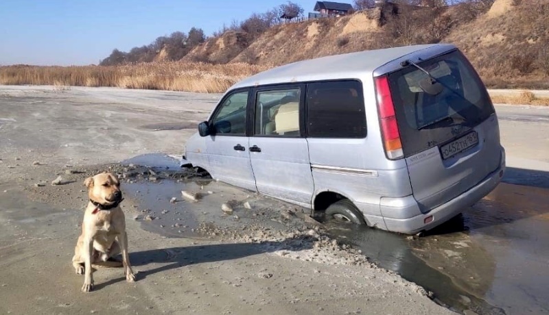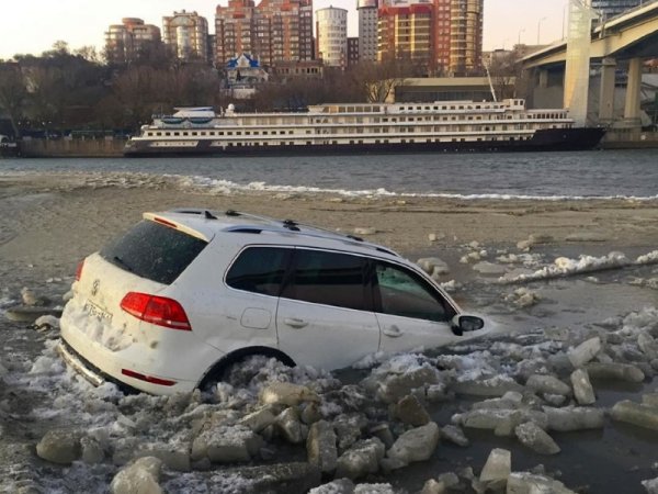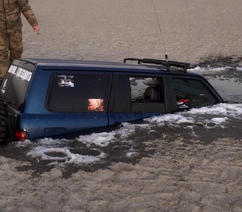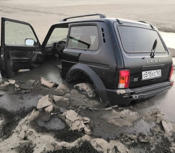В Таганроге из-за сильных отгонных ветров обмелел залив. Местные водители решили использовать его для заездов, но не учли, что пески оказались зыбучими, а местами даже скрывают под собой заполненные водой полости. В результате масса незадачливых автомобилистов застряли на дне.