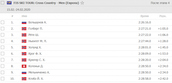 Большунов возглавил общий зачет Тура после 4-х гонок.