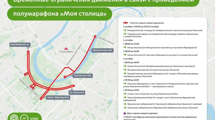 4 и 5 октября 2025 года в Москве ограничат движение в связи с проведением полумарафона