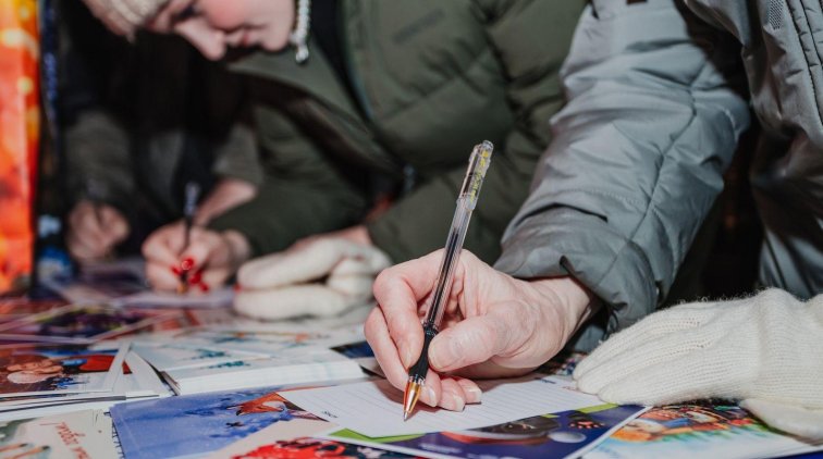 Москвичам также предлагают подписать открытку для бойцов на фронте