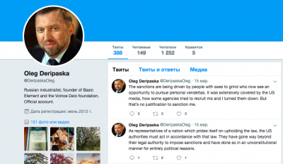 — Oleg Deripaska (@DeripaskaOleg) 11 марта 2018 г.