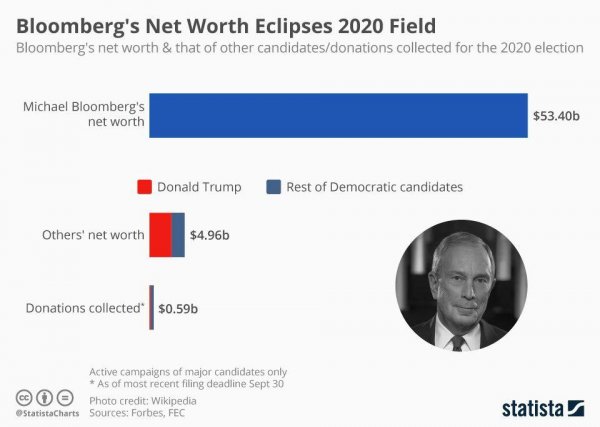 На баснословное богатство кандидата в президенты США на выборах 2020 года Майкла Блумберга обратил внимание канал "Железный занавес". Даже суммарные активы действующего хозяина Белого дома Дональда Трампа и кандидатов от Демократической партии не могут сравниться с состоянием Блумберга.