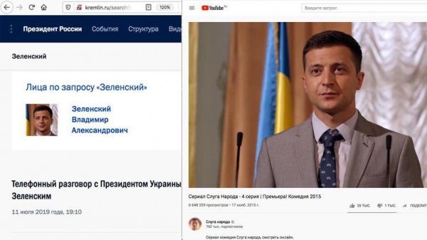 Интересное наблюдение сделали авторы канала "Минправды". Оказывается, на официальном сайте Кремля профиль президента Украины Владимира Зеленского проиллюстрирован кадром из сериала "Слуга народа".