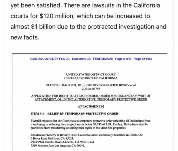 Резонно предположить, что знаменитый теневыми финансовыми схемами Давид Каплан является автором хитроумной комбинации по увеличению суммы судебных исков в США и последующего дележа прибылей между истцами, Катериной Босов и самим Давидом Капланом.