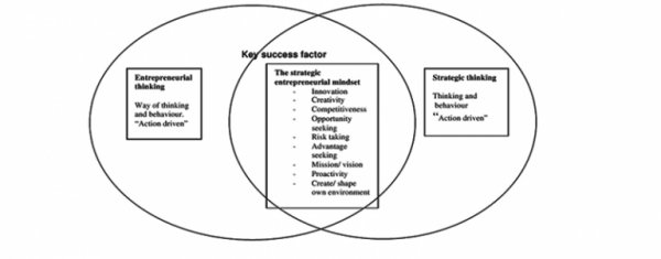 Цель этой статьи — продемонстрировать, что стратегическое предпринимательское мышление — это единая концепция, которую следует рассматривать как самостоятельную конструкцию. В этом исследовании рассматривается сложная взаимосвязь между предпринимательским мышлением и принятием стратегических решений. Оно проливает свет на их взаимозависимость и определяет ключевые факторы, влияющие на их синергию. Предполагается, что стратегическое мышление не отличается от предпринимательского мышления. Это связано с тем, что ключевые параметры/элементы стратегического мышления и предпринимательского — это одно и то же, в результате чего возникает термин «стратегическое предпринимательское мышление».