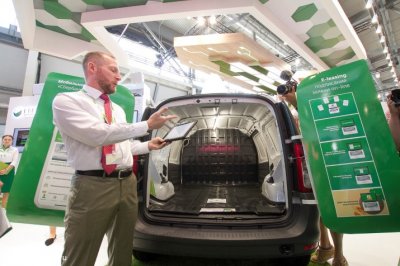 Компания «Сбербанк Лизинг» презентует на стенде три варианта автомобиля «Лада Ларгус» - для различных видов бизнеса. Машина при этом всего одна, но с помощью программы дополненной реальности можно посмотреть три различные «начинки» кузова.