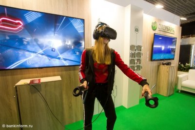 Цифровые технологии пригодны не только для трудовых будней, но и для развлечений, и об этом Сбербанк тоже помнит. Помимо упомянутых выше деловых игр, здесь есть игры виртуальной реальности. Надев очки, активный гость выставки может помахать световым мечом, а уставший - поплавать с китами.