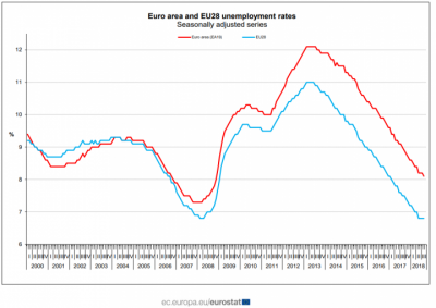 В сравнении с показателями прошлого года, уровень безработицы снизился во всех государствах-членах ЕС. Наибольшее снижение зарегистрировано на Кипре – с 10,5% до 7,5%, в Хорватии – с 10,9% до 8,5% и Португалии – с 8,8% до 6,8%.