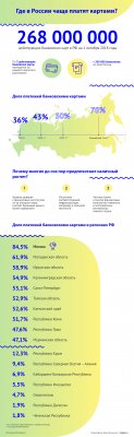 ЦБ прогнозировал, что в 2018 году доля безналичных расчетов в России превысит долю расчетов за наличные и составит 55%. Но исследование РИА Новости свидетельствует о том, что за 12 календарных месяцев, закончившихся 1 октября 2018 года, лишь 43% своих платежей россияне проводили с помощью банковских карт. В то же время в 2017 году с помощью пластиковых карт осуществлялось 36% платежей. Таким образом, в России популярность оплаты банковскими картами все же растет.