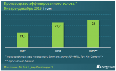 По словам председателя правления АО «НГК «Тау-Кен Самрук» Каната Кудайбергенова, в 2018 году завод «Тау-Кен Алтын» перевыполнил производственный план. Планировалось аффинировать 20 тонн золота, но фактически было произведено 22,7 тонны.