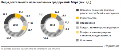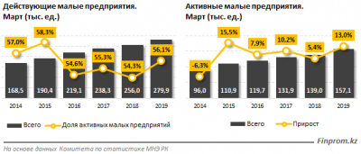 На конец марта 2019 года количество действующих малых предприятий составило 279,9 тысячи, увеличившись на 9,3% за год. 56,1% из них занимают активные предприятия, годом ранее показатель составлял 54,3%.