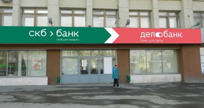 Название банка в логотипе сохранилось, но визуальное воплощение поменялось. Символ процента был заменен на арифметический знак больше >. Фокус-группа банка интерпретировала его только в позитивном ключе: вектор движения, динамика роста, объединение множества, превосходство. Сейчас в логотипе используется два цвета: более светлый зеленый и коралловый. Их сочетание символизирует преемственность и связь между классическим СКБ-банком и молодым ДелоБанком для предпринимателей.