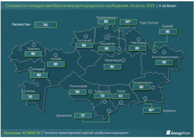По итогам апреля текущего года стоимость внутригородского автобусного проезда в среднем по стране выросла на 1,1% за год. Сразу на 45,5% подорожал проезд в Актобе (с 55 до 80 тенге).