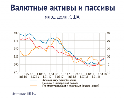 Отношение валютных пассивов ко всем обязательствам банка снижается медленнее, чем доля валютных активов. Разница в соотношении валютной составляющей активов и пассивов по 20 крупнейшим банкам была отрицательной еще с начала года (22,1% против 22,4% на 1 января). На 1 мая она достигала уже -0,8 процентного пункта, говорится в обзоре банковского сектора ЦБ.