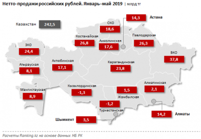 объему нетто-продаж рублей среди регионов РК традиционно лидируют