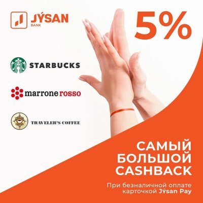 карту Jysan Bank с высоким на рынке Cashback. Cashback возвращается