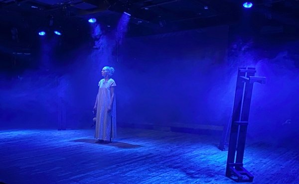 Минимализм декораций на фоне темных стен придает дому вид убежища, носимого всеми ветрами, а хлипкость конструкций из перевернутых скамеек усиливает драматургию сюжета, происходящего на территории Германии в годы войны.