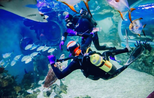 Каждые выходные на территории океанариума проходят бесплатные подводные шоу, детские мастер-классы и красочные выступления. Кроме того, посетителям «Крокус Сити Океанариума» представляется возможность подводного погружения в самый большой аквариум (глубиной до 5 м) в окружении настоящих кораллов, актиний, морских черепах, акул, груперов и др.