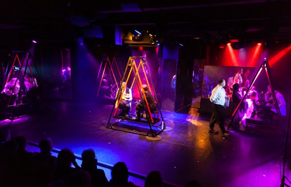 Еще один интересный шаг — использование на сцене прозрачных экранов, через которые зритель может наблюдать отдельные сцены произведения. В определенный момент свет в них гаснет, включается подсветка в зале и в экранах зрители видят себя, таким образом, становясь непосредственными участниками спектакля.