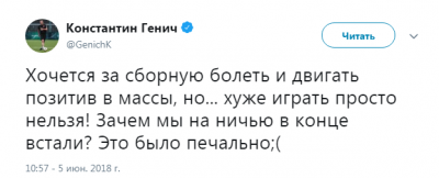 Негативный эмоциональный фон сменился лишь в преддверии матча. Толпа порицателей словно притормозила у края пропасти, помедлив перед тем, как ниспровергнуть в неё «нерадивых спортсменов». И прозвучали хорошие слова. И проскользнули хорошие эмоции. И долгожданная солидарность со своими спортсменами просквозила, наконец, в комментариях.