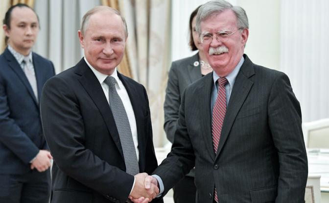 23 октября советник президента США по национальной безопасности Джон Болтон встретился с президентом РФ Владимиром Путиным. Переговоры проходили на фоне заявлений Дональда Трампа о том, что Вашингтон может выйти из Договора о ракетах средней и малой дальности (ДРСМД), которые тот сделал накануне. Именно этот вопрос стал первоочередным в обсуждении. Помимо этого обсуждались такие принципиальные темы, как Сирия, Украина и вопросы ядерного разоружения.