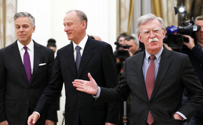 Российская сторона предоставила Джону Болтону такую вольность, на которую он, когда и если он её запрашивал, вряд ли мог и надеяться. Болтон провел сепаратные переговоры с главой российского МИД Сергеем Лавровым, секретарем Совбеза РФ Николаем Патрушевым и главой оборонного ведомства Сергеем Шойгу.