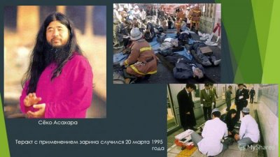 В марте 1995 года сектанты распылили зарин в токийском метро, тогда погибли 13 человек и 6,3 тысячи получили отравления различной степени тяжести.