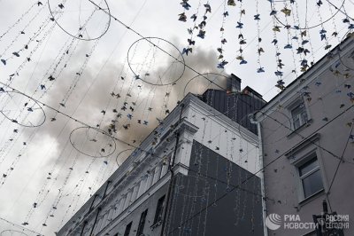 "Пожар на Большой Дмитровке локализован в 17.21 на площади 50 квадратных метров. Сведений о пострадавших не поступало", — говорится в сообщении в Twitter.