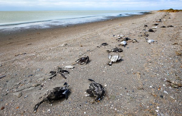Крымские ученые-орнитологи уже насчитали больше 10 тысяч погибших особей черношейной утки-пеганки и морских голубков. Среди мертвых пернатых — мартины желтоногие, крачки и другие породы чаек.