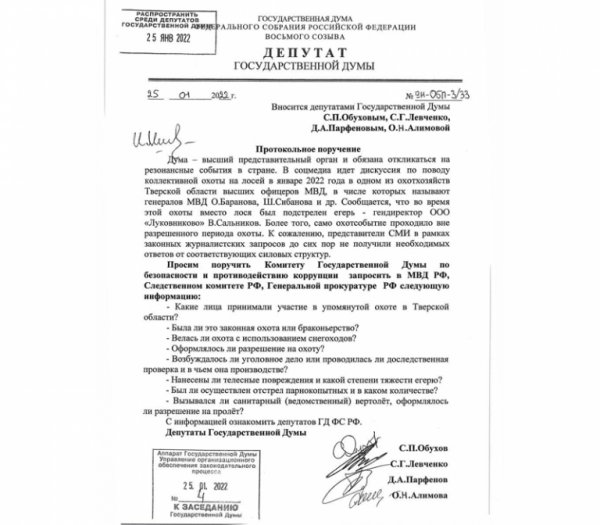 Вместо официальной и недвусмысленной реакции из компетентных органов: «Да, случайная трагедия», или наоборот: «Нет, клевета!», те, кому по должности, положено хранят гробовое молчание. Поэтому коммунисты и перешли в наступление: кто конкретно принимал участие? Насколько это было законно? (Например, согласно утверждённым правилам, на кабанов в Тверской области разрешается охотиться до 28 февраля, а вот на лосей и не только — до 10 января). Что с оформлением лицензий? Использовались ли снегоходы? Возбуждено ли уголовное дело? Вызывался ли санитарный вертолёт? Само собой — кто стрелял, куда попал, в кого попал?