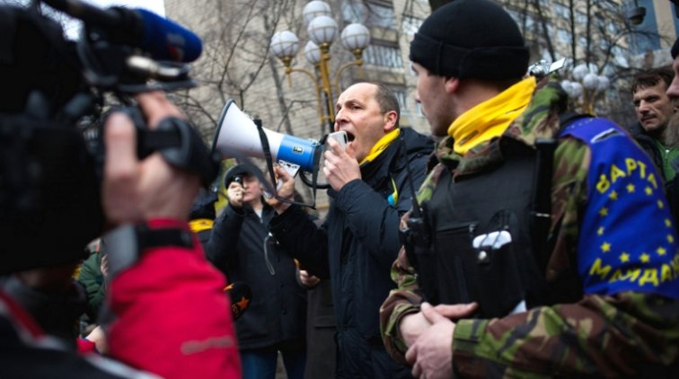 Во время Евромайдана он был самопровозглашенным комендантом палаточного лагеря. Создал и возглавил «Самооборону Майдана» — прототип бандеровских «добробатов», которые затем участвовали в резне в Донбассе.