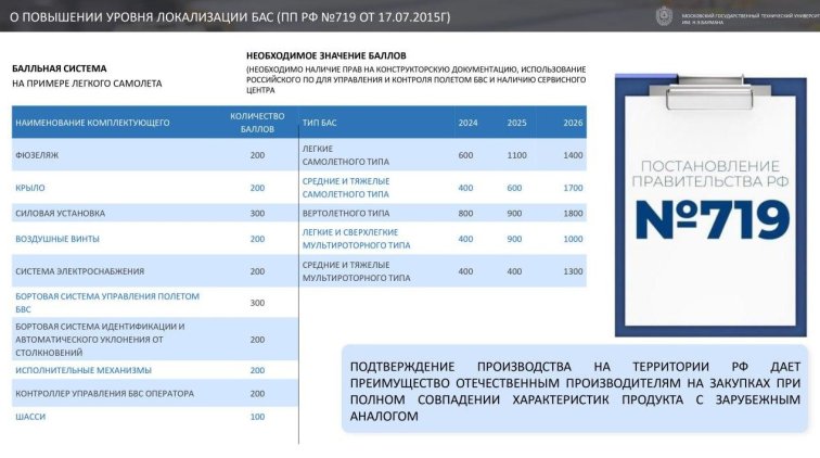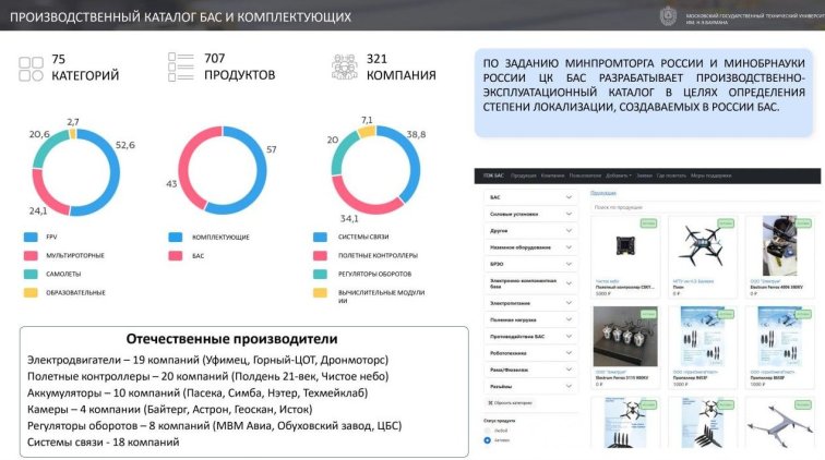 Специалист говорил о разрабатываемом по заказу Минпромторга производственно-эксплуатационном каталоге, который поможет с определением локализации создаваемых в России БАС. Статистика сейчас следующая: