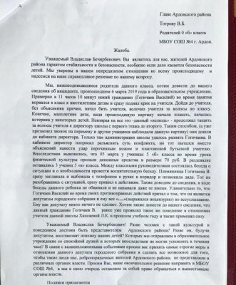 У детей увиденное вызвало истерику, на следующий день некоторые из них не пришли в школу из-за страха. Все это представители родительского комитета изложили в обращении к главе Ардонского района Владиславу Тотрову.