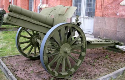 Но почему же тогда мы встретили войну практически безоружными в этом смысле? Согласитесь, 122-мм полевая гаубица образца 1909 года (дальность стрельбы до 7 700 м), 152-мм полевая гаубица образца 1910 года и 152-мм осадная пушка образца 1910 года, для армии такой страны, как Россия, маловато. Более того, если следовать "букве закона", из трех орудий калибром больше 120 мм, только 152-мм можно "законно" отнести к тяжелой артиллерии.