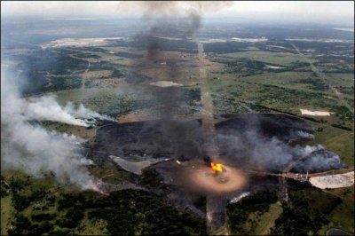 Результат взрыва газопровода у города Коменки, недалеко от Познани, в Польше. Фото выбрано потому, что на нем особенно хорошо видны все последствия взрыва газопровода