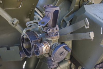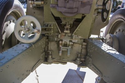 Противооткатные устройства включали гидравлический тормоз отката (под стволом) и гидропневматический накатник (над стволом).