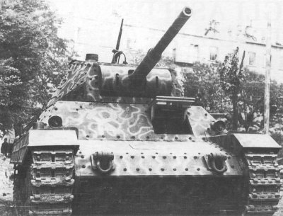 Прототип танка P26/40 в Германии, на заднем плане деревянный макет Ягдтигра