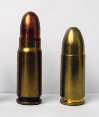 Слева патрон 7,62x25мм ТТ, справа 9x19мм Парабеллум