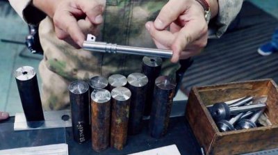 В ДНР нет своего производства патронов. «Какой патрон есть, тем и работаешь», — рассказывает военный инженер с позывным «Ташкент» в цеху по производству оружия. Он демонстрирует замену стволов этого пистолета и показывает нам основные производственные циклы.