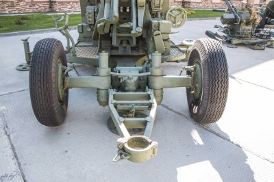 Люлька литая, спереди имеет обойму с тремя отверстиями: одно в качестве цилиндра тормоза отката – накатника, два для цилиндров тормоза наката.
