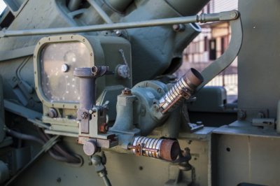 Досылатель гидропневматический. Перед первым выстрелом досылатель взводится вручную при помощи лебедки, далее досылка производится за счет энергии отката.