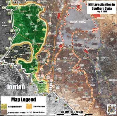 По сведениям телеканала Al Mayadeen, сирийские войска займут позиции ССА в районе пограничной с Иорданией реки Ярмук. В этой местности действуют террористы, связанные с группировкой «Исламское государство» (запрещена в РФ).