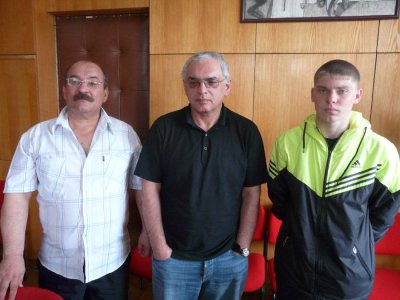 В.Веревочкин (слева) и его внук (справа), а в центре режиссер Карен Шахназаров.