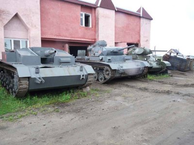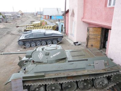 Вот они, танки «эпохи блицкрига». Все вместе и все на одном дворе у одного человека Вячеслава Веревочкина, жившего в деревне Большой Оеш под Новосибирском. Увы, но люди на планете Земля смертны. Даже самые хорошие и талантливые.