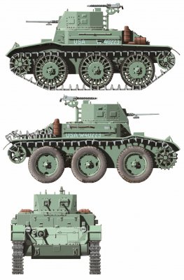 Что касается США, то там… армия старалась всеми силами превзойти танк частника Кристи, то есть создать точно такой же колесно-гусеничный танк с пулеметным (прежде всего с пулеметным!) вооружением, но только из этого ничего не получалось. Вернее, получались вот такие перлы, как на этом рисунке.