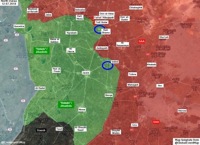 Дараа. С боевиками, занимавшими кварталы города Дараа: Тарик-эс-Садд, Дараа-эль-Балад, Эль-Маншиа, Гирз и лагерь беженцев Назихин достигнута договоренность о сдаче оружия и капитуляции. Столица провинции полностью перешла под контроль правительственных войск. В районы, ранее контролировавшиеся джихадистами вошли подразделения российской военной полиции.