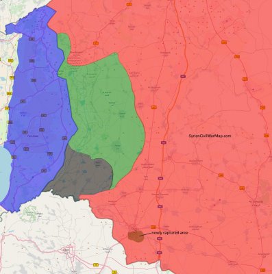 На западе провинции, правительственными силами заняты населенные пункты Нахайдж (Nahaj) и Хирбет Каис (Khirbet Qais). Также под контроль САА перешла плотина у н.п. Тафас (Tafas).