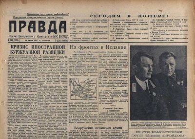 Между тем в США внешней политикой интересуется всего лишь 5% населения! [1] И живут неплохо, кстати. В Лос-Анджелесе пенсия пожарным доходит до 100000 долларов. Неплохо, не правда ли? Однако самое интересное, что аналогичным образом проводимая информационная политика в России, когда она была СССР, уже… была! Особенно наглядно это прослеживается на примерах публикаций в советской периодической печати 30-40 гг., как центральной, так и местной, о которых вполне можно сказать, что они колебались в едином ритме с политикой нашей «родной Коммунистической партии». Причем информационная политика в те годы проводилась очень грубо, примитивно, с откровенными «ляпами» в подаче материалов.