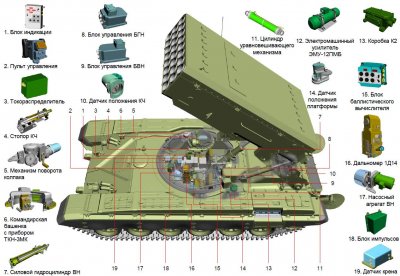 "Солнцепек" и элементы его системы управления огнем. Рисунок Btvt.narod.ru